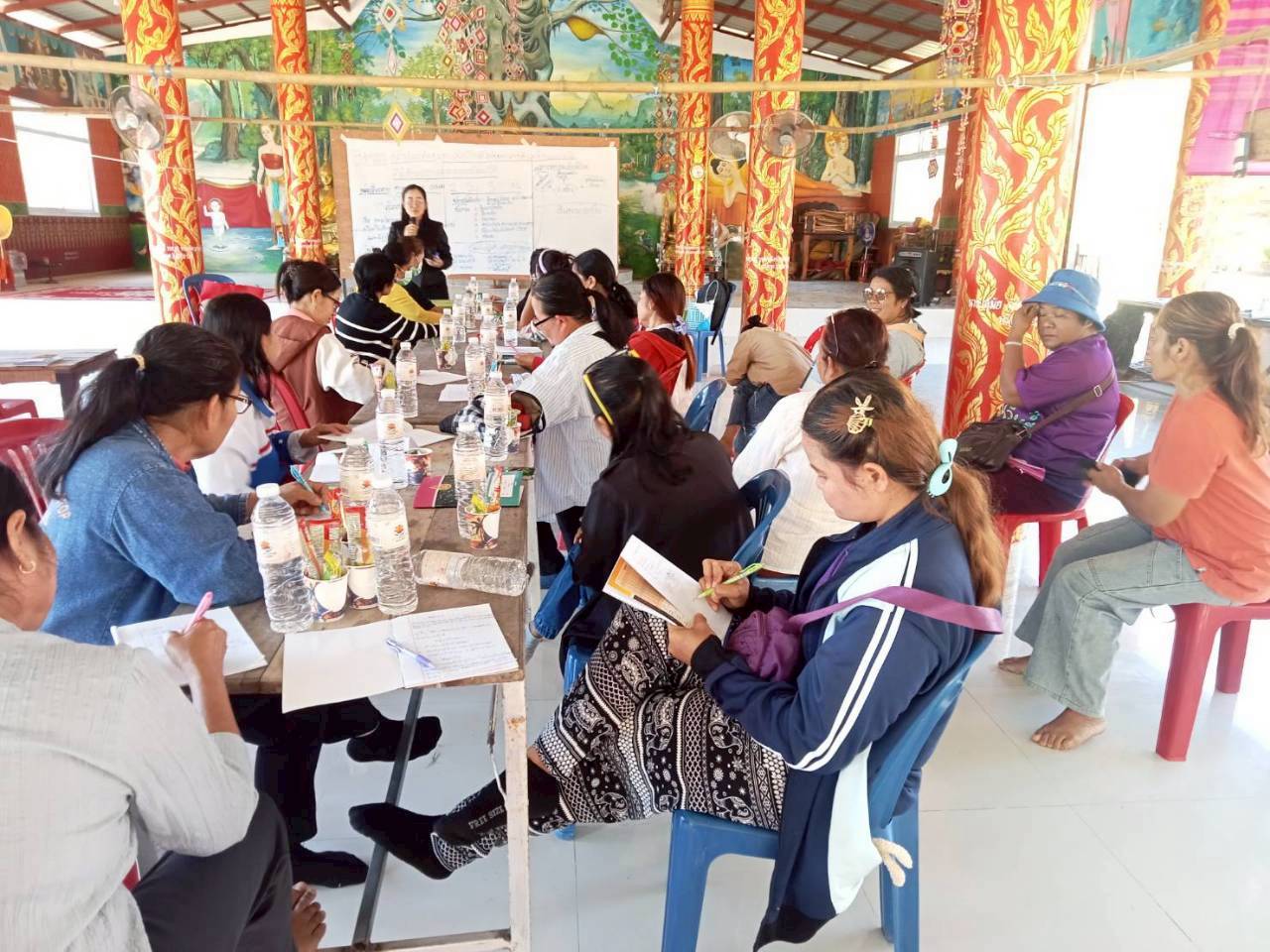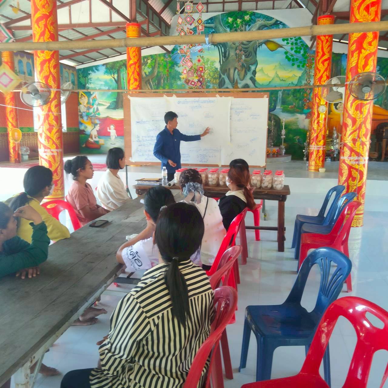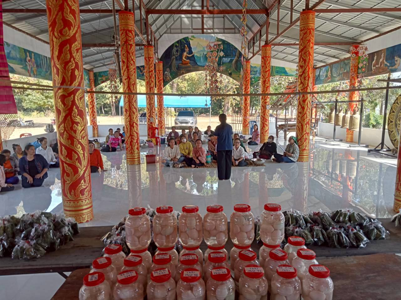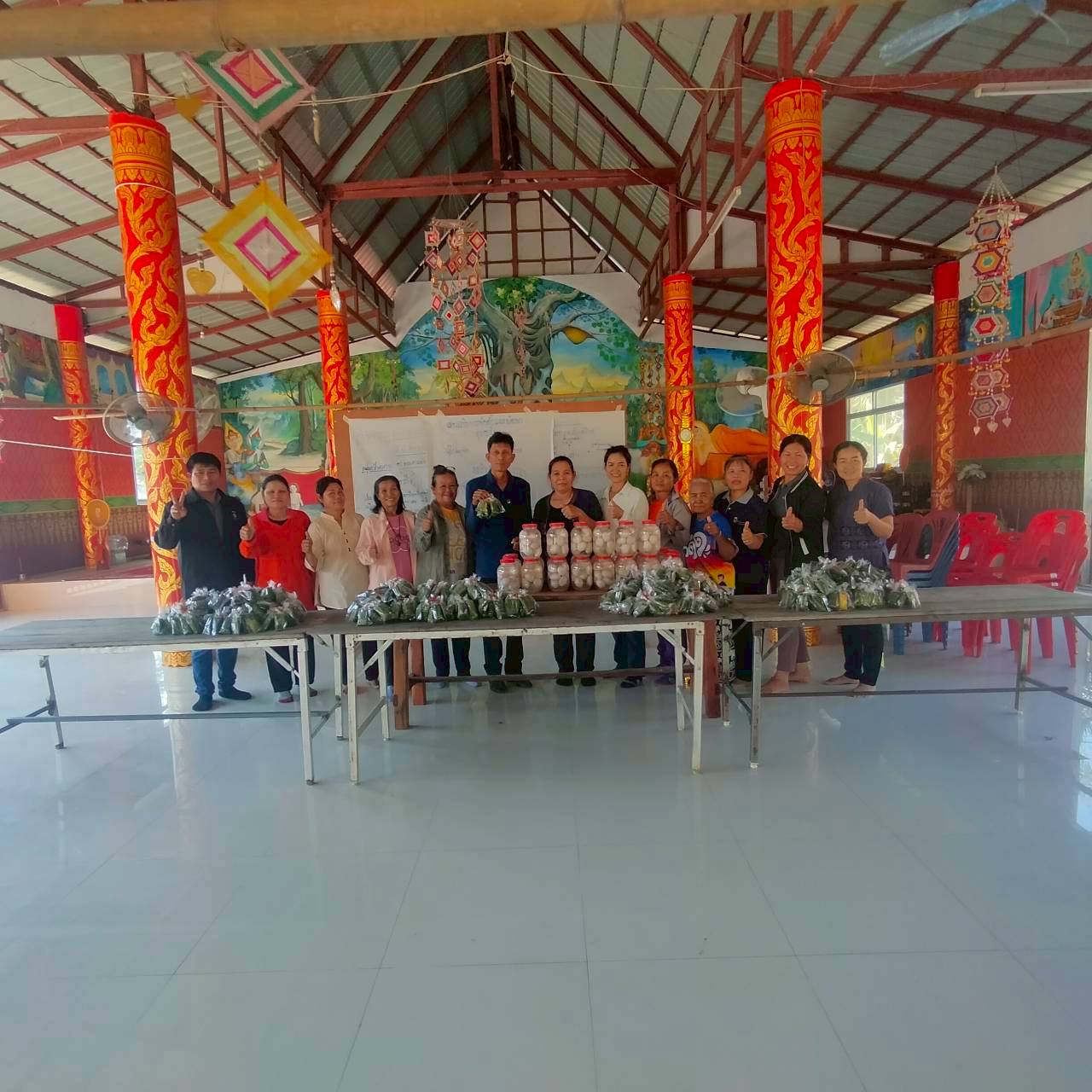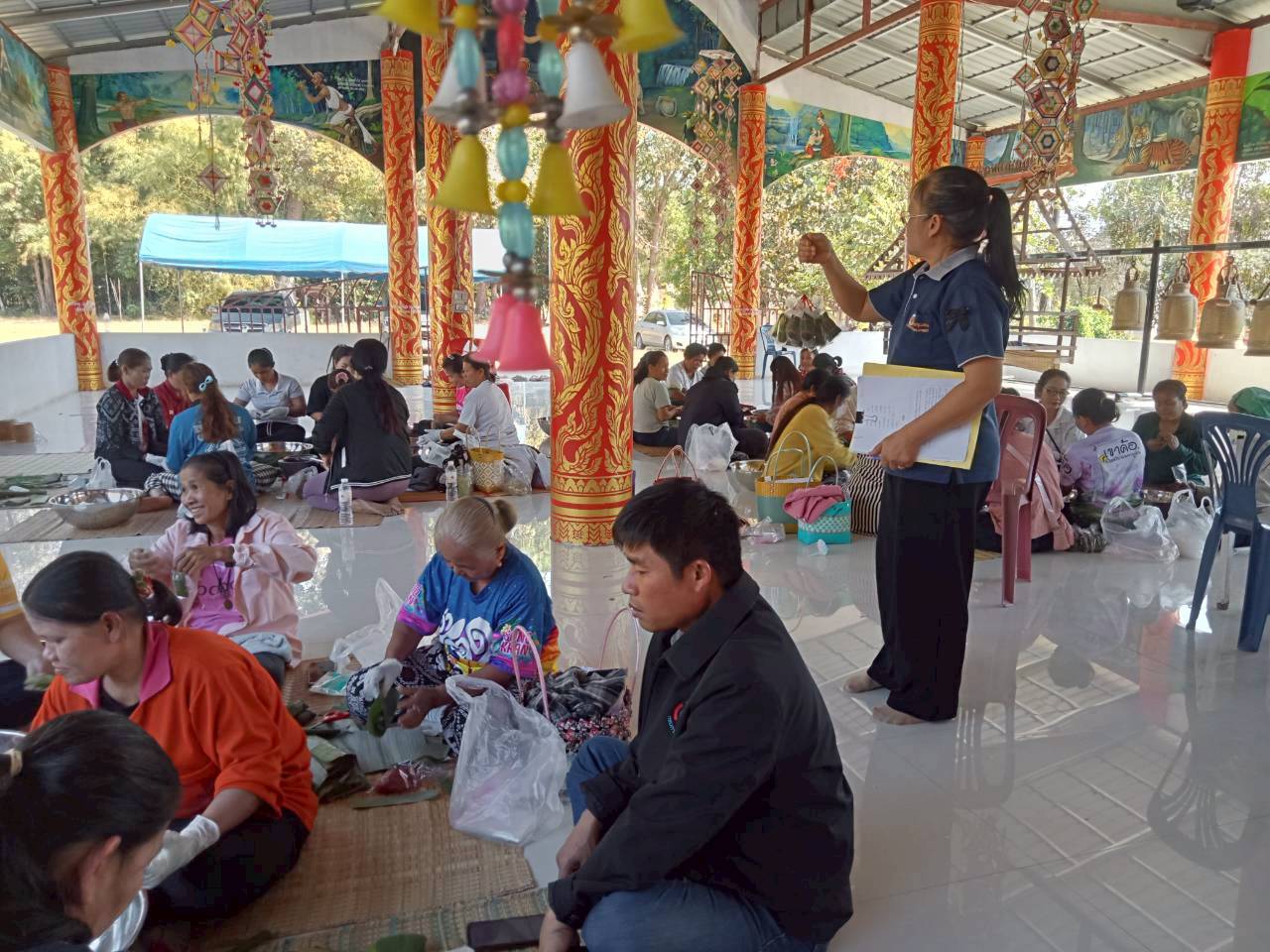 สำนักงานัฒนาชุมชนอำเภอนาจะหลวย ดำเนินโครงการส่งเสริมและพัฒนาอาชีพตามแนวทางสมาชิกชุมชน กิจกรรมสร้างสัมมาชีพชุมชนครัวเรือนที่ได้รับผลกระทบด้านอาชีพและรายได้ที่มีศักยภาพและสามารถพัฒนาได้ ณ วัดบ้านม่วง ตำบลพรสวรรค์ โดยมีกลุ่มเป้าหมาย 30 คน